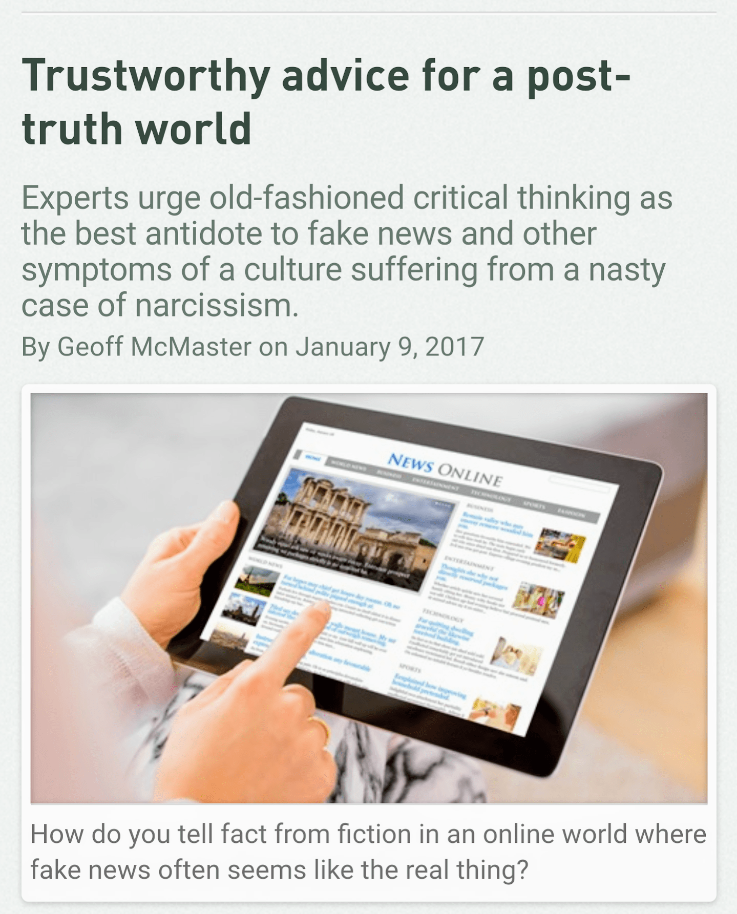 The other day while glancing through the website of my alma mater I chanced across a headline that read like this. ‘Trustworthy advice for a post-truth world’. It was an interesting headline one that made me think for sometime.
